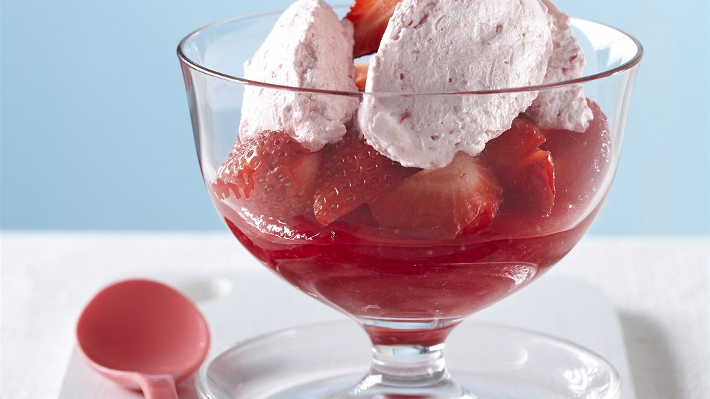 - Dortové želé připravíme podle návodu na obalu. Smícháme ho se zbylým jahodovým pyré, rozlijeme do pohárků a dáme do chladničky ztuhnout.