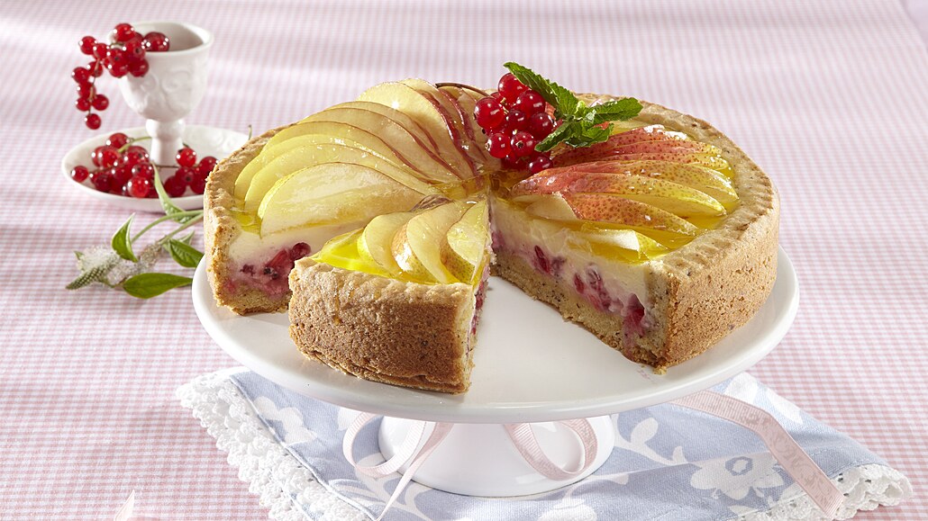 - Hrušky omyjeme, rozkrojíme napolovinu a vykrojíme jádřince. Pak nakrájíme na tenké plátky, které rozložíme dokola na povrch koláče. Dortové želé připravíme podle návodu na obalu. Želé nalijeme na hrušky, dort uložíme do chladničky a necháme 3 hodiny ztuhnout. Pak sejmeme formu, ozdobíme čerstvým rybízem a nakrájíme na porce.