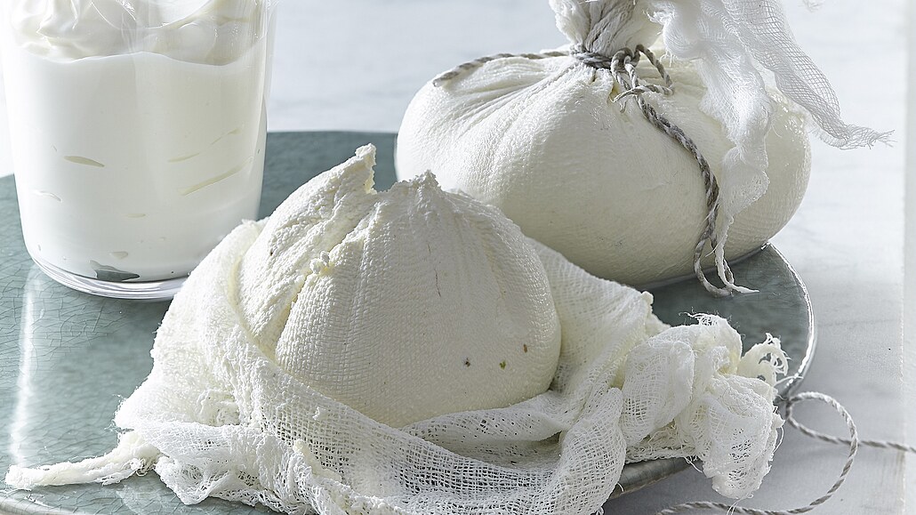- Cípy gázy spojíme, utáhneme a vytvoříme z jogurtu bochánek. Pak gázu nad bochánkem převážeme provázkem a vzniklý balíček zavěsíme, aby z něj mohla volně vykapávat tekutina. Uložíme do chladu na nejméně 24 hodin.
