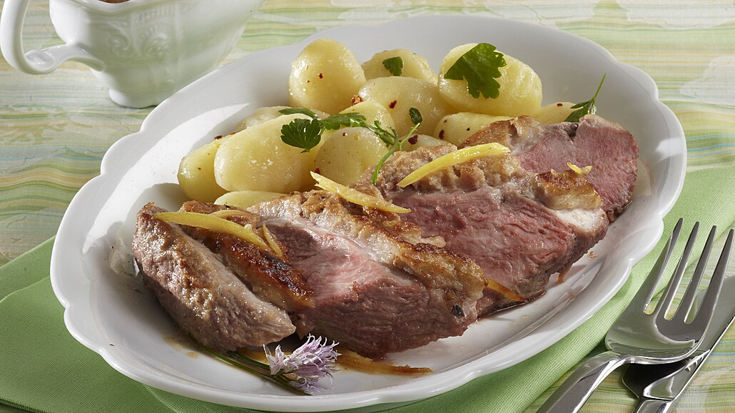 - Hotové maso vyndáme a do výpeku přidáme druhou část jablečného pyré a přilijeme bílé víno. Promícháme, povaříme asi 2 minuty a nakonec zjemníme máslem. Dochutíme citronovou šťávou a solí. Podáváme s bramborovými noky.