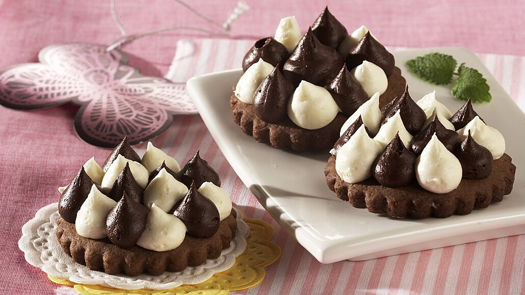 - Smetanu na světlý krém necháme přejít varem a odstavíme. Vložíme do ní na malé kousky nakrájenou bílou čokoládu a za stálého míchání ji necháme rozpustit. Krém necháme v ledničce přes noc zatuhnout. Stejně připravíme i tmavý krém.