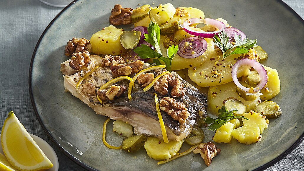 - Nakonec dochutíme solí, pepřem, vinným octem, promícháme a ozdobíme čerstvou petrželkou. Salát podáváme s kaprem.