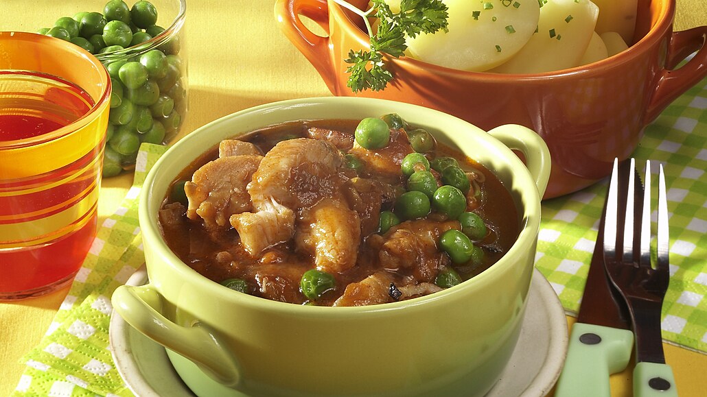 - Do kastrolu přidáme rybí maso a hrášek. Vaříme, dokud nejsou ryba i hrášek měkké. Guláš dle potřeby dosolíme a odstavíme.