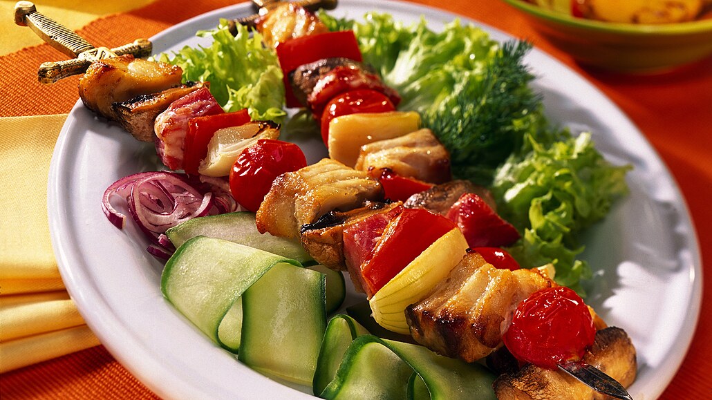 - Kapra, houby, slaninu a zeleninu napichujeme střídavě na špejle nebo kovové jehly. Na pánvi rozehřejeme olej a špízy ze všech stran opečeme. Špízy můžeme také ugrilovat na elektrickém grilu nebo na dřevěném uhlí.