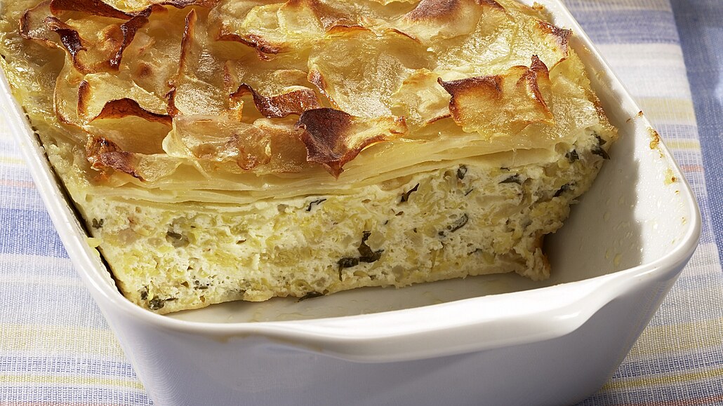 - Kapustu rozprostřeme do vymazaného a vysypaného pekáčku. Navrch rozložíme plátky brambor. Potřeme je rozpuštěným máslem a osolíme. Nákyp zapékáme v troubě při 180 °C asi 40 minut.