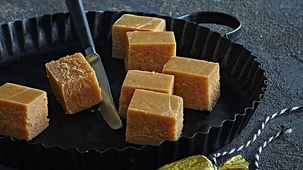 - Čokoládu rozpustíme na vodní lázni a zamícháme metličkou do teplé směsi. Hmotu nalijeme do připraveného pekáčku. Necháme 4 až 5 hodin zatuhnout v lednici. Pak ji nakrájíme horkým nožem na karamelky.