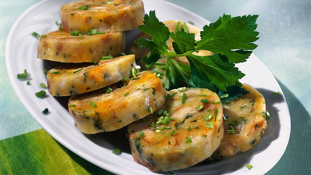 - Rohlíky z předchozího dne pokrájíme na kostičky a zalijeme rozpuštěným máslem. Přidáme 2 žloutky, mléko, hrubou mouku a dochutíme solí a muškátovým květem. Vše důkladně promícháme. Nakonec přidáme našlehaný sníh z bílků. Připravené těsto vyválíme do tvaru knedlíku a položíme na utěrku. Opatrně zabalíme a svážeme provázkem. Vaříme v osolené vodě asi 20-25 minut.