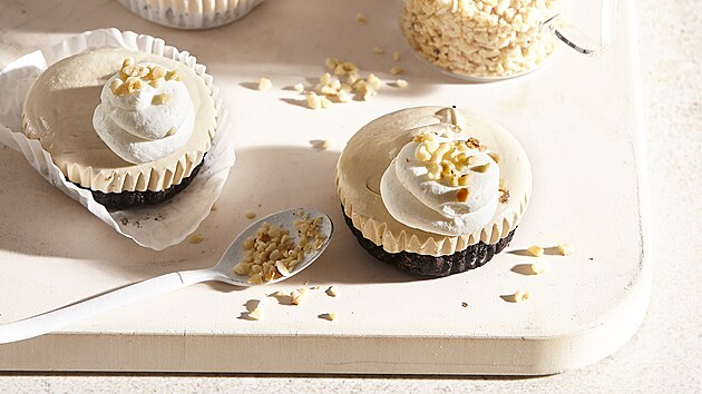 - Povolenou zmrzlinu smícháme s teplým espresem a tvarohem. Pak náplň nalijeme do papírových košíčků s nepečeným korpusem. Vložíme do mrazničky a necháme tuhnout asi 4 hodiny.