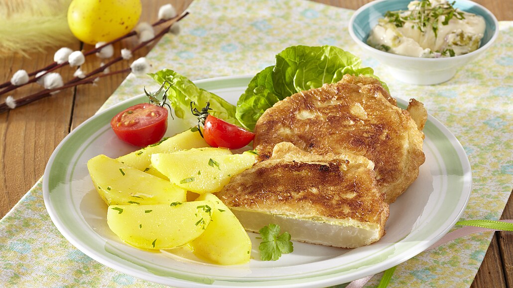 - Dip: Majonézu zředíme smetanou a vínem, přidáme všechny ostatní suroviny a promícháme. Dip podáváme ke kedlubnovým řízečkům spolu s vařenými brambory.
