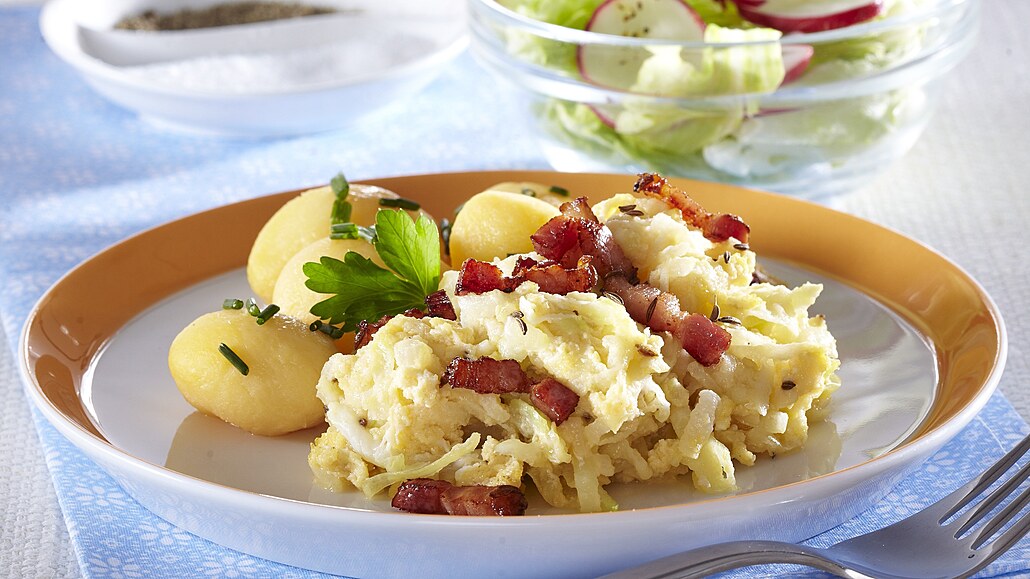 - Vejce rozklepneme do misky, rozšleháme metličkou a vmícháme k dušeným kedlubnám. Nakonec kedlubnový mozeček posypeme nasekanou petrželkou a opečenou anglickou slaninou. Podáváme s bramborami.