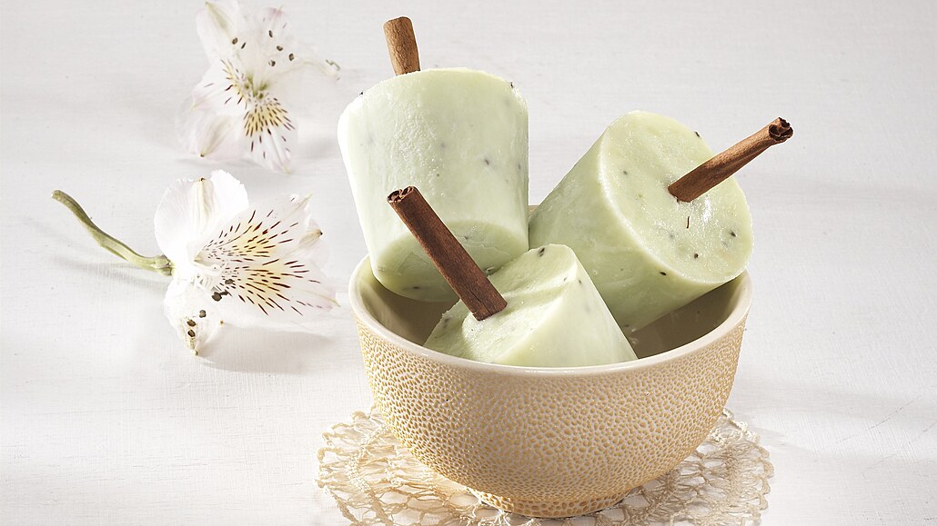 - Když hmota částečně zatuhne, zapíchneme do středu nanuků celé kousky skořice nebo dřívko.
