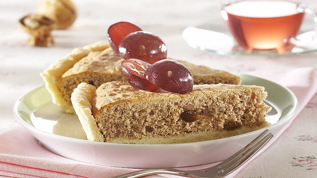- Do velké mísy prosejeme mouku, promícháme s kořením, solí, nastrouhanými vlašskými ořechy a rozinkami. Žloutky vyšleháme s polovinou cukru do pěny. Bílek vyšleháme se zbylým cukrem a lžící jablečného octa na pevný bílkový sníh. Obě hmoty zlehka promícháme, přidáme kysanou smetanu a rozpuštěné máslo. Nakonec vmícháme směs mouky.