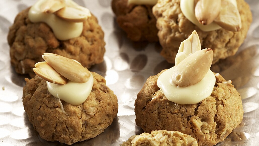 - Sodu rozpustíme ve lžíci studené vody. Máslo nakrájíme na kousky a vymícháme s cukrem do pěny. Přidáme vejce, ovesné vločky, mouku, mleté mandle, citronovou kůru, skořici a perníkové koření. Přilijeme vodu se sodou. Ze všech přísad vypracujeme tužší těsto.