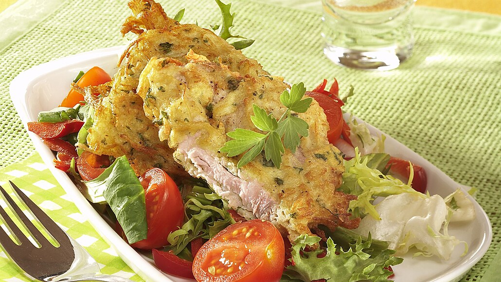 - Na pánvi rozpálíme olej. Kotlety namočíme do bramborového těsta, dobře je v něm obalíme a vložíme do rozehřátého oleje. Pozvolna (aby se maso dostatečně propeklo) je smažíme dozlatova. Osmažené kotlety položíme na papírový ubrousek, který odsaje přebytečný tuk.