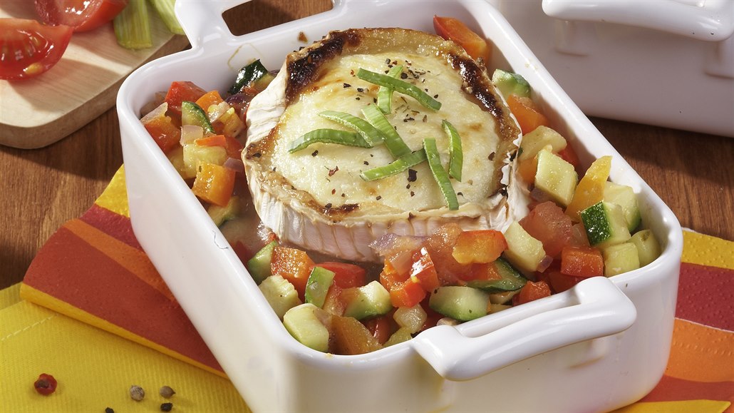 - Zeleninovou směs rozdělíme do zapékacích misek, poklademe plátky sýra a vložíme pod gril, aby se sýr roztavil. Podáváme s pečenými brambory nebo rýží.