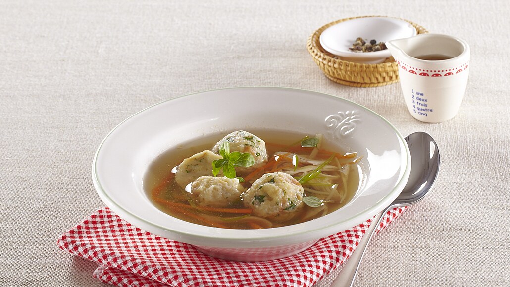 - Hmotu necháme 10 minut odpočinout a pak navlhčenýma rukama tvarujeme knedlíčky, které uvaříme v osolené vodě.