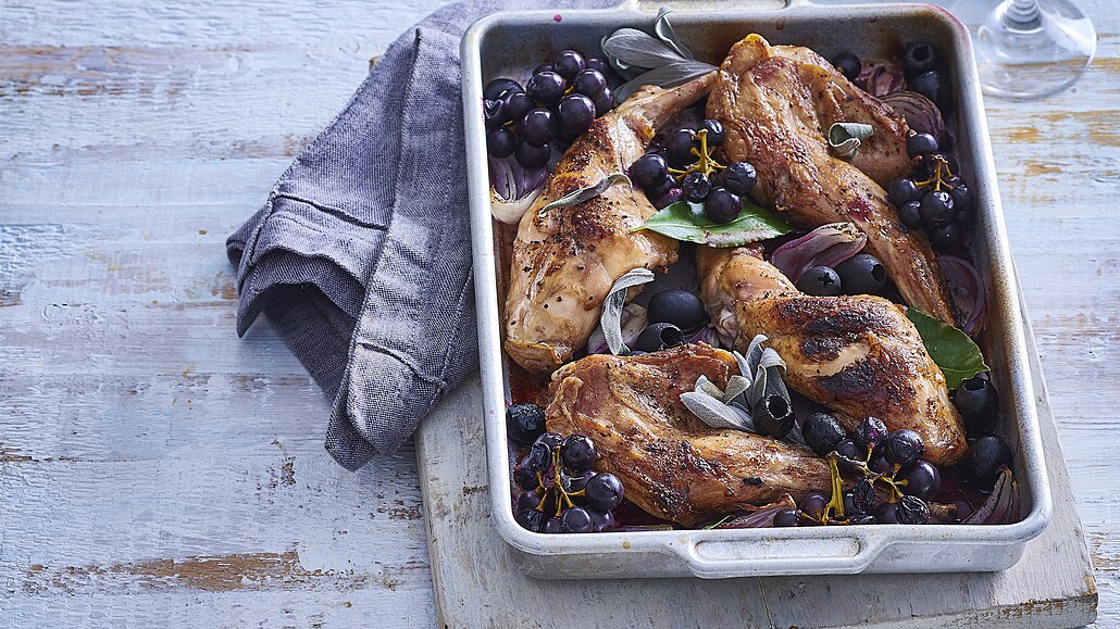 - Za občasného míchání vaříme bez pokličky asi 35 minut, dle potřeby podléváme vývarem. Jakmile je maso měkké přidáme hrozny a vaříme dalších cca 10 minut.