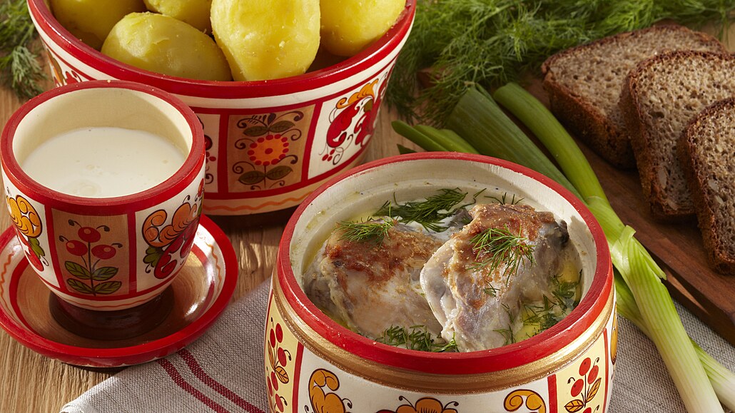- Druhý den dáme králíka do trouby nahřáté na 160 °C. Pečeme ho asi 1,5-2 hodiny. Nakonec do omáčky vmícháme nakrájený kopr (nebo králíka koprem posypeme). Podáváme s bramborami vařenými ve slupce