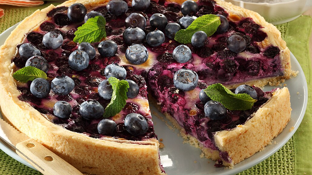 - Na těsto rozprostřeme borůvky. Ovoce zalijeme smetanovou zálivkou a koláč vložíme do předehřáté trouby. Při 180 °C ho pečeme asi 30 minut.