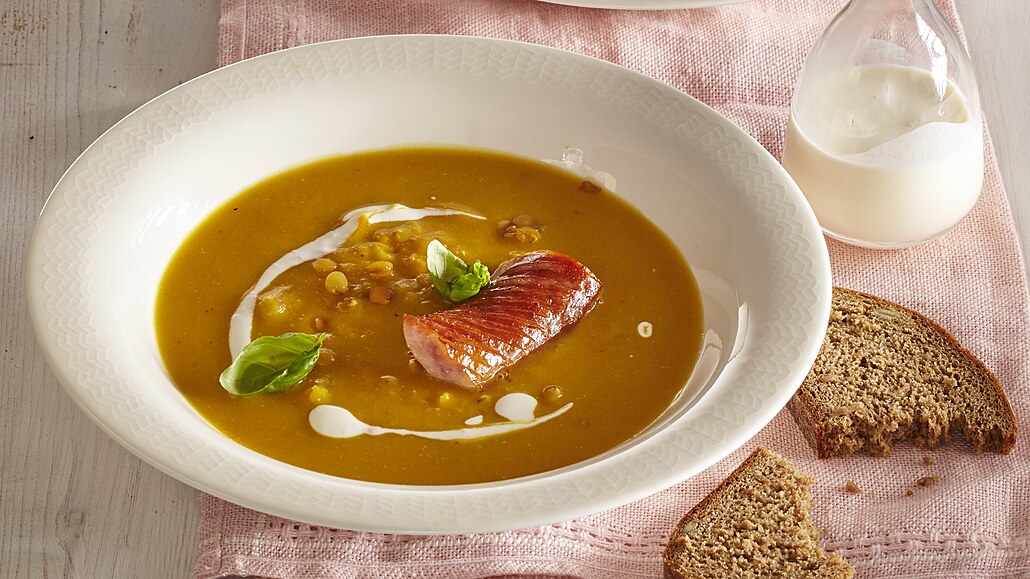 Krémová polévka z červené čočky s grilovanou klobáskou – Vydatný a hřejivý oběd