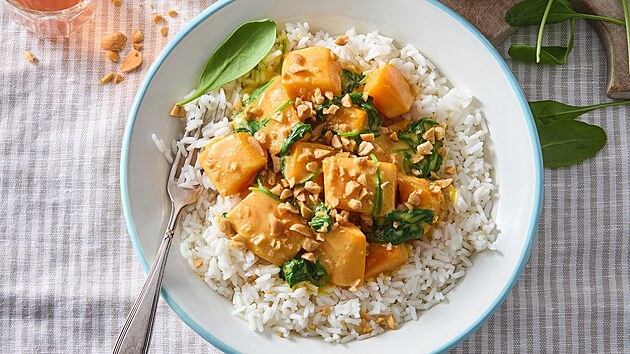 - Na mírném ohni vaříme cca 30 minut nebo dokud nejsou batáty měkké. Nakonec vmícháme špenát, dochutíme limetovou šťávou, solí a pepřem.