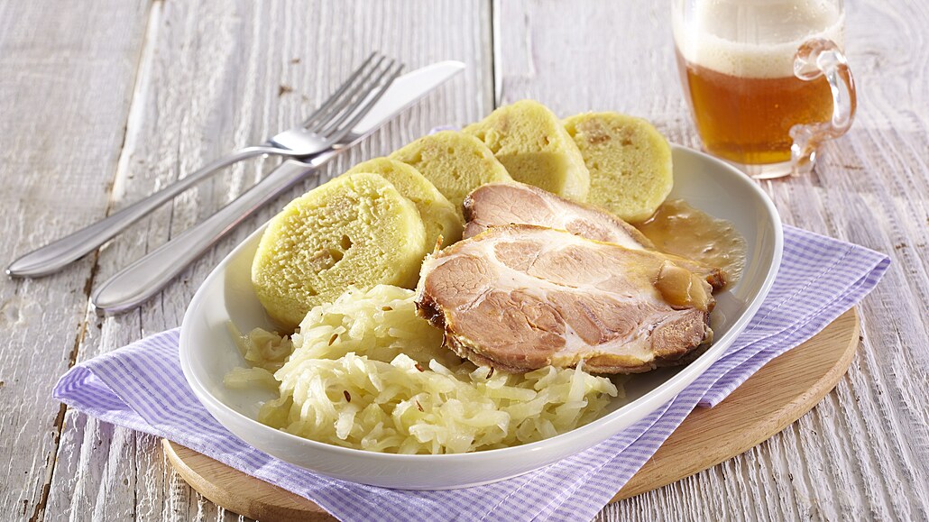 - Upečené maso vyjmeme, výpek vyrestujeme na tuk a zaprášíme moukou. Za stálého míchání přilijeme vývar a krátce provaříme. Z krkovice odstraníme provázek a nakrájíme ji na plátky. Rozdělíme ji na talíře, podlijeme šťávou a doplníme kedlubnovým zelím. Vhodnou přílohou jsou knedlíky.