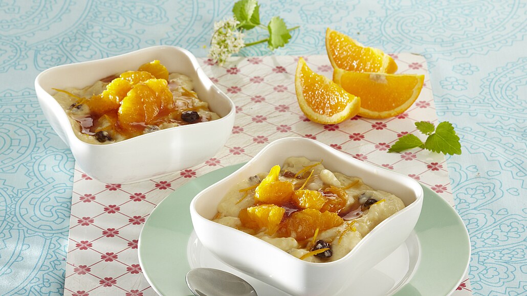 - Jeden pomeranč pečlivě omyjeme, osušíme a nastrouháme z něj asi lžíci kůry. Společně s tvarohem ji vmícháme do krupičné hmoty. Nakonec přidáme pokrájená jablka a rozinky. Rozdělíme do misek a necháme vychladnout.