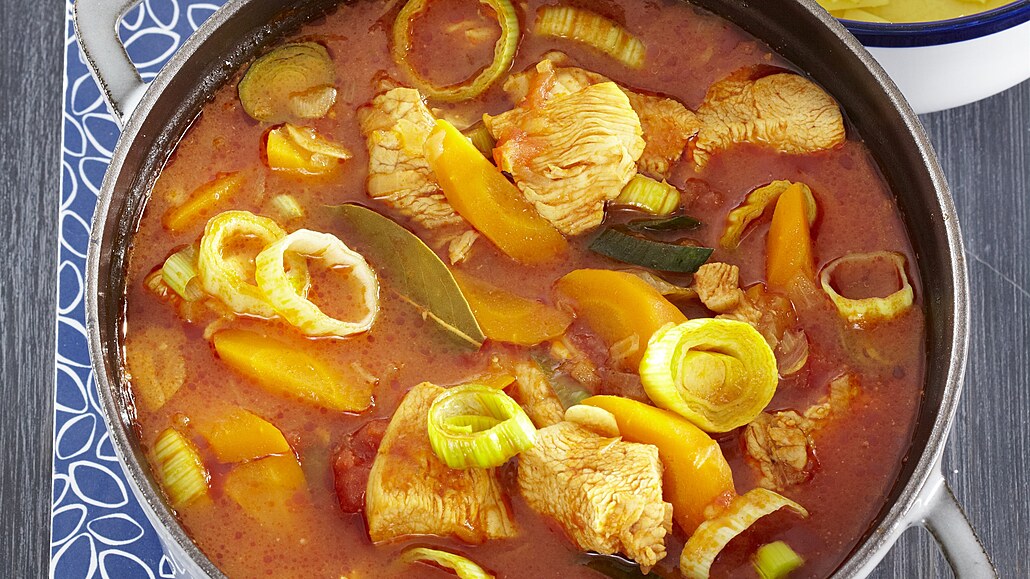 - Do kastrolu přidáme očištěný pórek nakrájený na kolečka a guláš zahustíme moukou rozmíchanou v troše vody. Vše dochutíme solí, pepřem, cukrem a octem, ještě asi 5 minut povaříme a odstavíme. Podáváme s těstovinami.