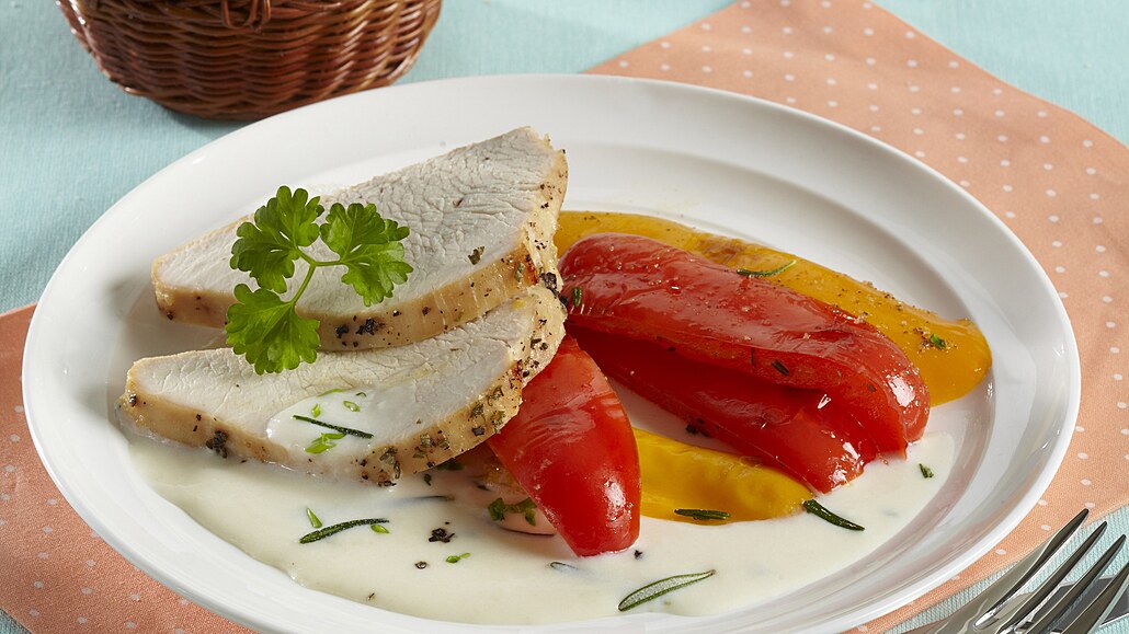 - Z pekáčku odstraníme alobal a mléčný výpek přelijeme do kastrůlku. K masu přidáme papriky a vše dopečeme dozlatova.