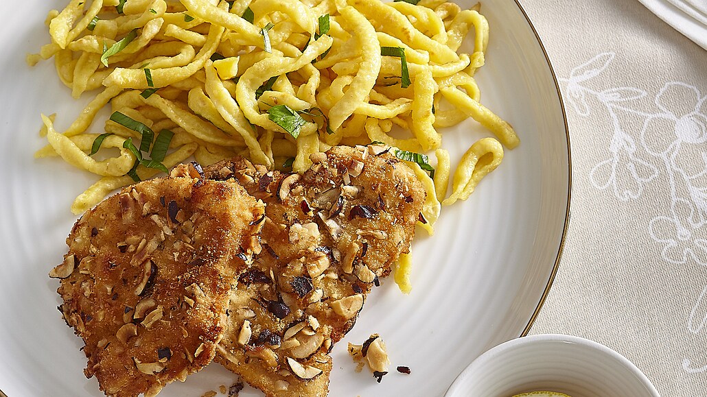 - Když špecle vyplavou, vyjmeme je a dáme do hrnce se studenou vodou. Pak je přecedíme do pánve s rozpuštěným máslem a asi 1 minutu prohřejeme. Posypeme petrželkou a podáváme s řízky.