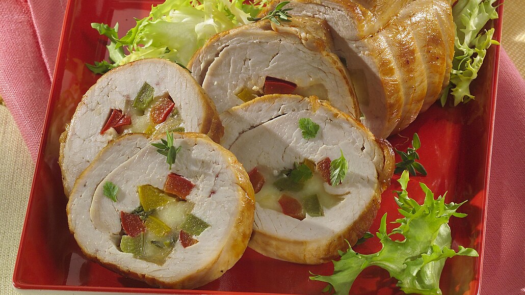 - Hotovou roládu vyndáme z trouby a necháme asi 5 minut zchladit a teprve poté ji opatrně krájíme na plátky, aby sýrová náplň nevytekla. Roládu podáváme bramborovou kaší a s hlávkovým salátem.