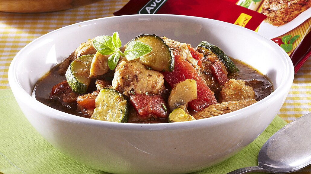- Vše ochutíme provensálským kořením Avokádo, osolíme a povaříme asi 10 minut. Podáváme s čerstvým pečivem a kysanou smetanou.