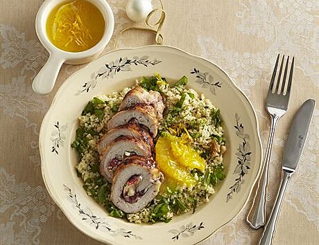 Krůtí závitky plněné krémovým hermelínem a brusinkami představují vrcholnou gastronomickou kompozici pro nejslavnostnější události. Ušlechtilá omáčka s meruňkovým likérem a čerstvými pomeranči dodává pokrmu luxusní charakter, který v kombinaci s ořechovým kuskusem vytvoří nezapomenutelný chuťový zážitek plný neotřelých ovocných tónů.
