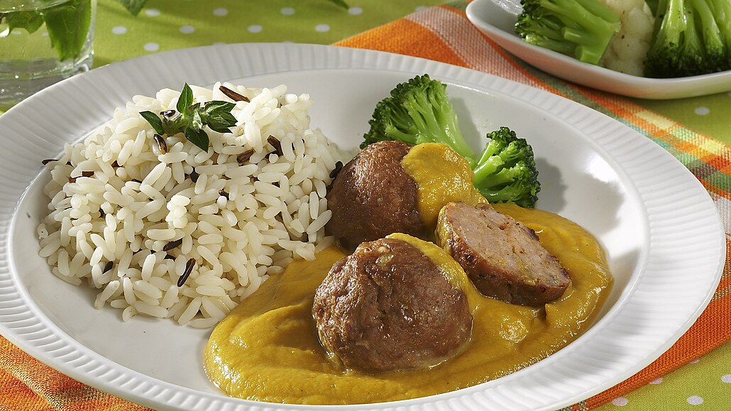 - Z mouky a másla připravíme světlou jíšku, kterou zahustíme základ omáčky. Zjemníme ho smetanou a krátce provaříme. Pak vše rozmixujeme ponorným mixérem. Upečené masové kuličky rozdělíme na talíře a přelijeme omáčkou. Jako příloha je vhodná rýže a vařená zelenina.