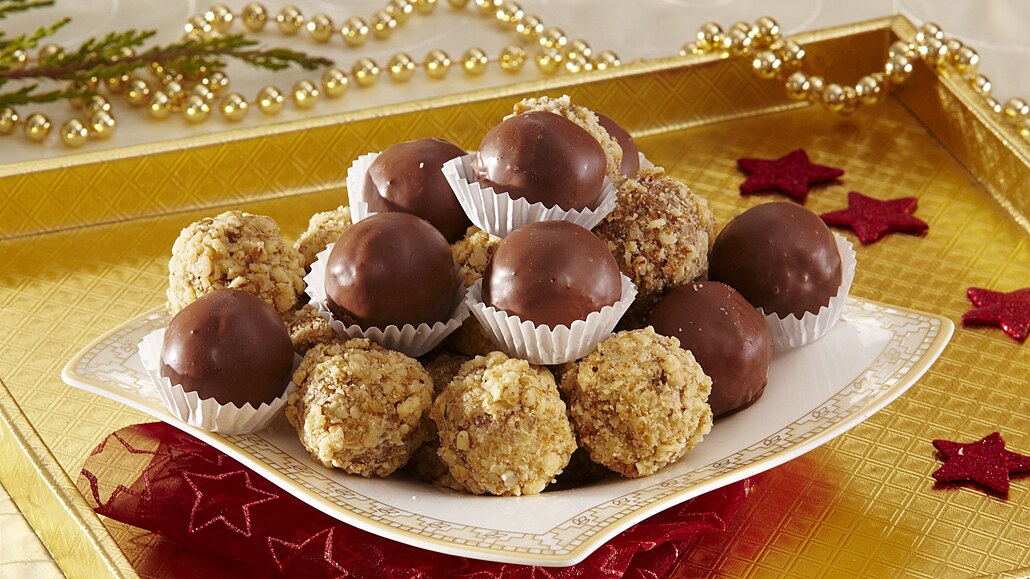 - Polovinu kuliček obalíme v nastrouhaných oříškách a druhou polovinu namočíme do rozehřáté čokoládové polevy. Po zatuhnutí čokoládové polevy naskládáme cukroví do papírových košíčků.