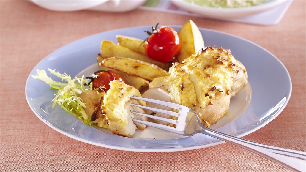 - Vložíme do vyhřáté trouby při 190 °C zapečeme dozlatova. Podáváme s různě upraveným bramborami a pečenými rajčaty.