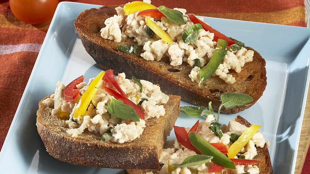 - Asi po 10 minutách přidáme do pánve papriky. Když trochu změknou, vmícháme vejce s jarními cibulkami. Když se vejce srazí, pánev odstavíme. Směs podáváme na topinkách.