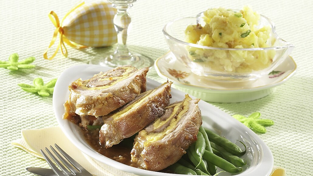 - Roládu nakrájíme na plátky, rozdělíme na talíře, ozdobíme bylinkami a přilijeme trochu omáčky. Jako příloha jsou vhodné šťouchané brambory a vařené fazolové lusky.
