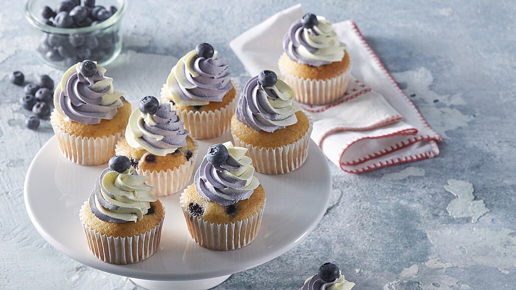 - Připravené košíčky naplníme do dvou třetin výšky, do každého nasypeme trochu borůvek a pečeme při 190 °C asi 25-30 minut. Upečené dortíky necháme chvíli zchladnout ve formě a následně je opatrně přesuneme na mřížku.