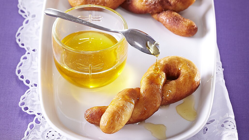 - Pak pozvolna usmažíme v rozehřátém oleji dozlatova a necháme okapat na ubrousku. Podáváme přelité medem a posypané skořicovým cukrem.