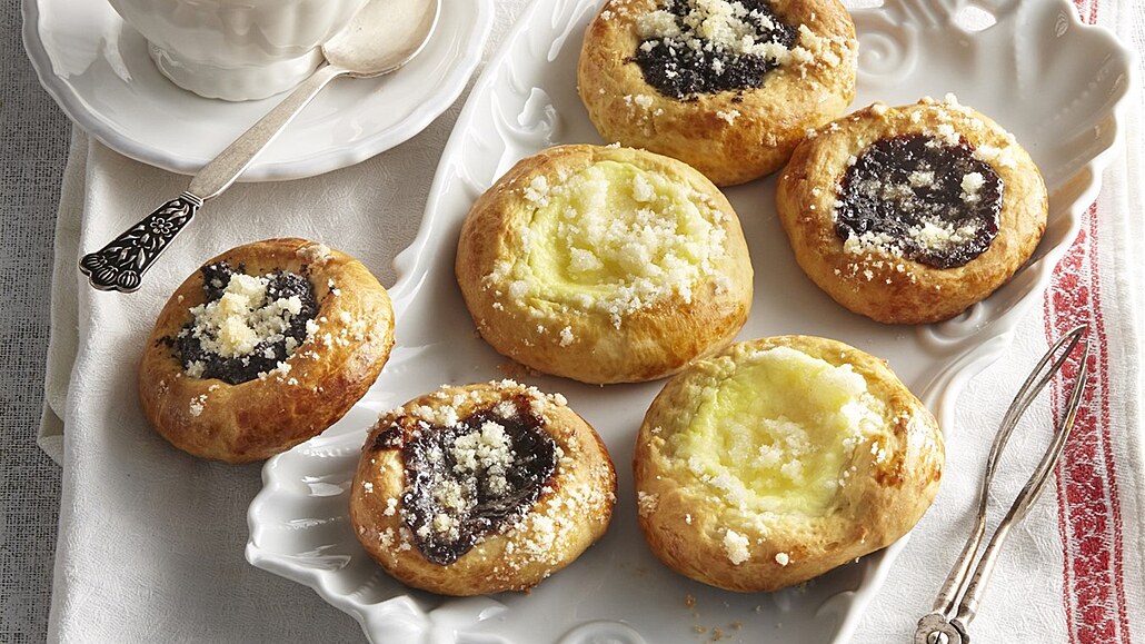 - Mezitím připravíme náplně. Povidla smícháme s rumem, tvaroh ušleháme s oběma druhy cukru a vejcem a mák svaříme s mlékem, cukrem a citronovou kúrou.
