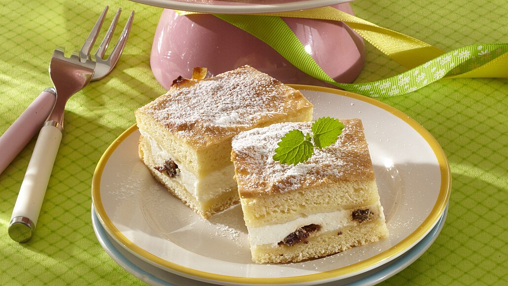 - Rozinky zalijeme rumem a necháme je nabobtnat. Tvaroh rozmícháme s bílky, oběma cukry a citronovou kůrou. Pak vmícháme nabobtnalé rozinky.