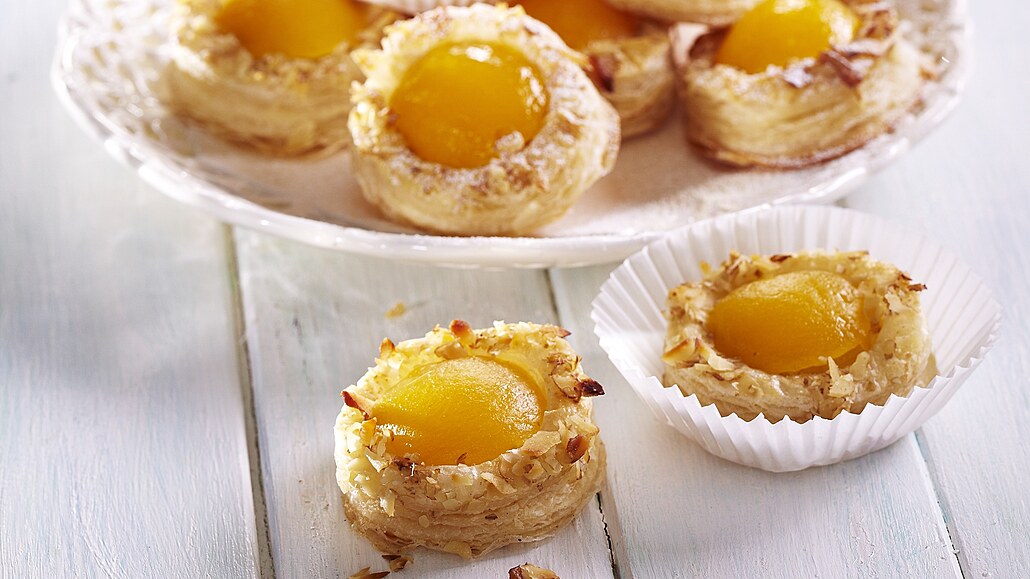 - Pečeme ve vyhřáté troubě při 200 °C asi 15 minut dozlatova. Vychladlá kolečka naplníme okapanými kompotovanými meruňkami a můžeme lehce pocukrovat.
