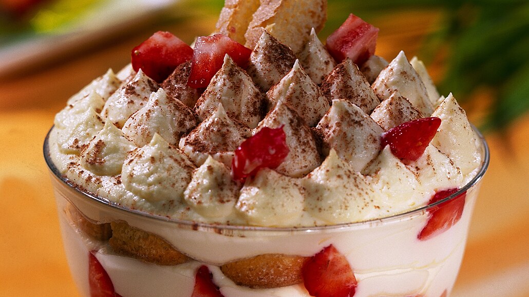 - Připravené poháry necháme vychladit a proležet, nejlépe přes noc. Před podáváním posypeme celý povrch kakaem, tak charakteristickým pro všechny druhy tiramisu, a dozdobíme jahodami, piškoty a meduňkou.