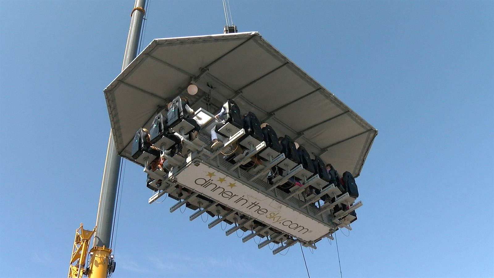 Vaří nám kuchař s michelinskou hvězdičkou. Má pod sebou plošinu, my na ní sedíme v křeslech jako z letadla. Ještě teď se mi potí prsty, když si představuji, jak mě k němu poutali. To mou výškofóbii malinko srazilo k zemi. Vždycky jsem dbala na prevenci (a i padák jsem před seskokem nechala zkontrolovat třikrát).