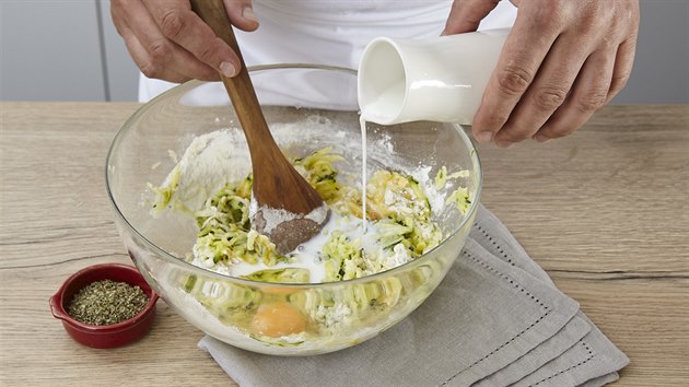 - Těsto necháme chvíli odpočinout, znovu promícháme a případně zahustíme trochou mouky.