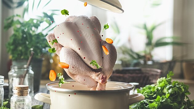 Alfa a omega jsou kosti, pojivové tkáně i maso. Kosti, a hlavně to, co je na nich a kolem nich, jsou plné kolagenu. Ano, té látky, kterou dnes často suplementujeme, abychom byli mladí, pevní, krásní... Při dlouhém, jemném varu se kolagen z chrupavek, šlach, kloubů a kůže mění na želatinu. Jak udělat hezký čirý kuřecí vývar, který nebude zakalený?