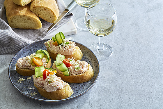 - Poté přidáme nadrobno nasekanou pažitku a jarní cibulku, osolíme, opepříme a vmícháme citronovou šťávu. Pomazánku podáváme například s celozrnnou bagetkou.