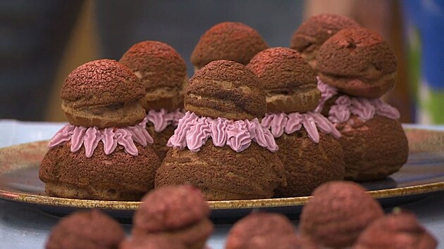 Jedním z nejdiskutovanějších momentů finálového dílu byly právě jeptišky, klasický francouzský dezert z odpalovaného těsta. V soutěži měly podobu tmavého korpusu plněného ostružinovou náplní a fialkovým krémem.