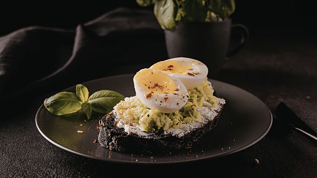 - Avokádo oloupeme a nakrájíme na kostky. Spolu s nasekanými bylinkami ho přidáme k vajíčkové směsi. Dochutíme solí, pepřem a zakápneme čerstvou citronovou šťávou.